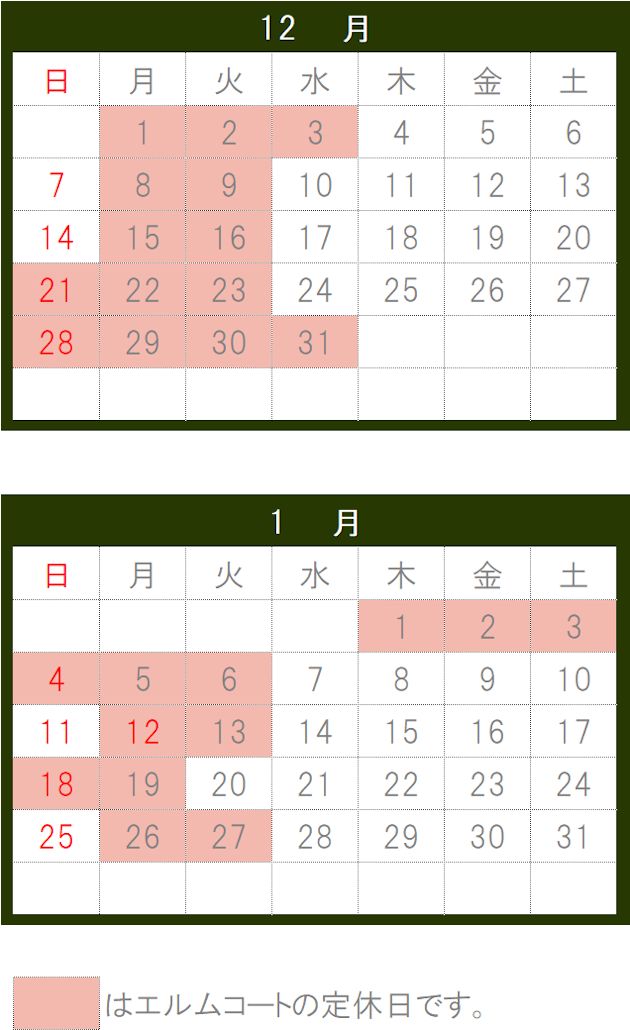 年末年始休業のお知らせ